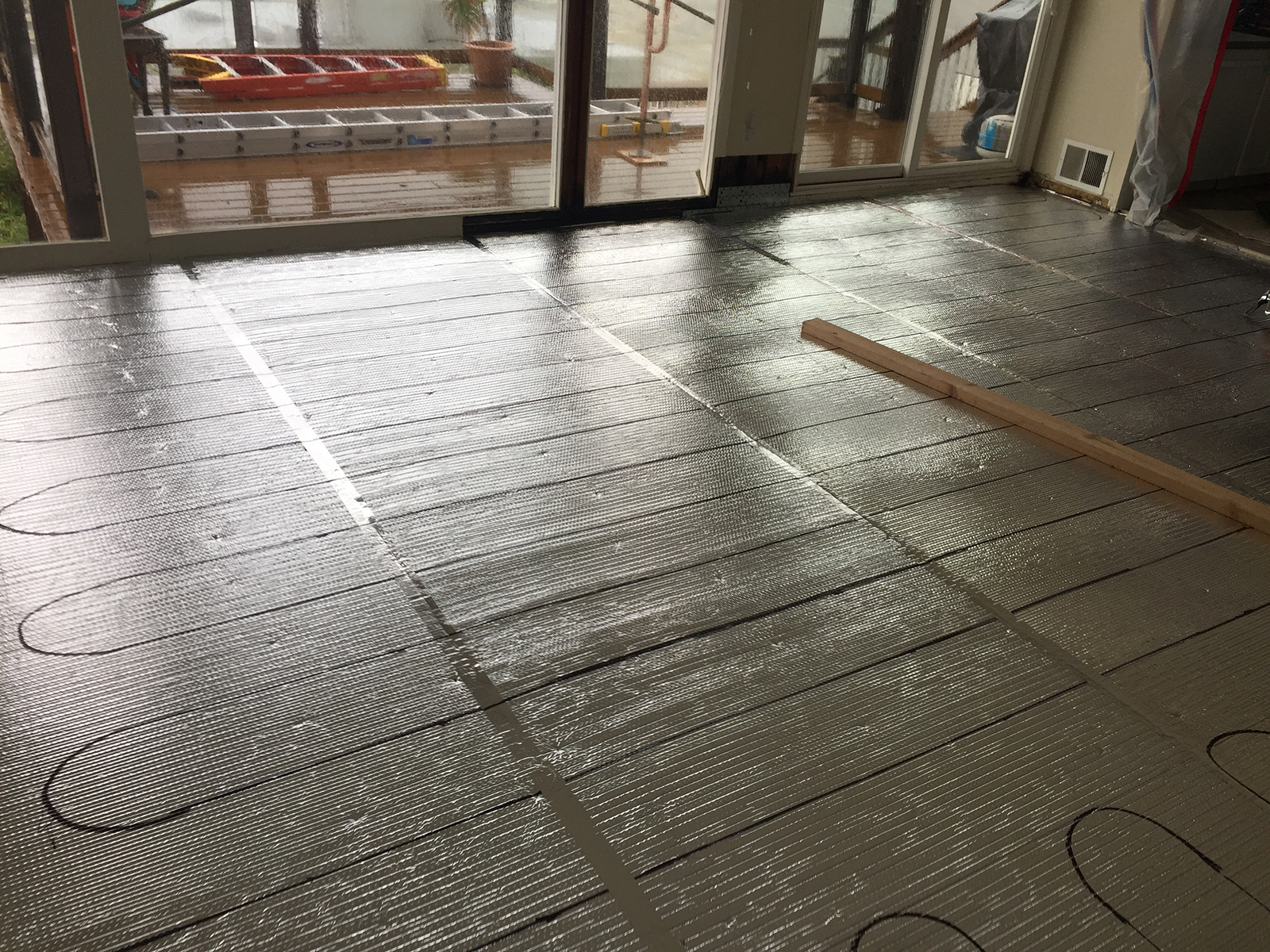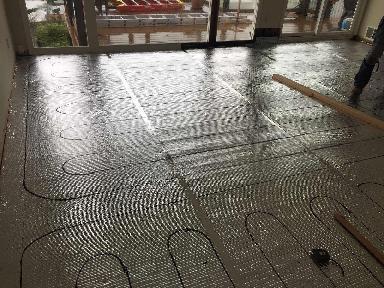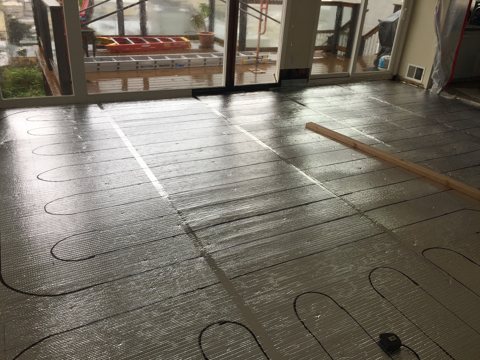 New radiant floor heating system was installed throughout the house. Using reflective insulation and 3/4 custom made plywood strips. Installed 3 zone temperature control system. New mechanical room was installed in the garage.