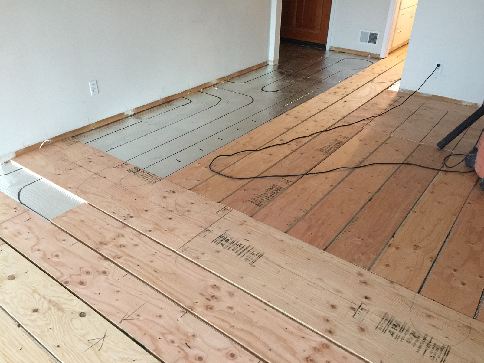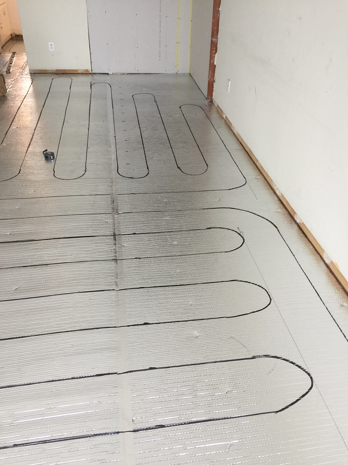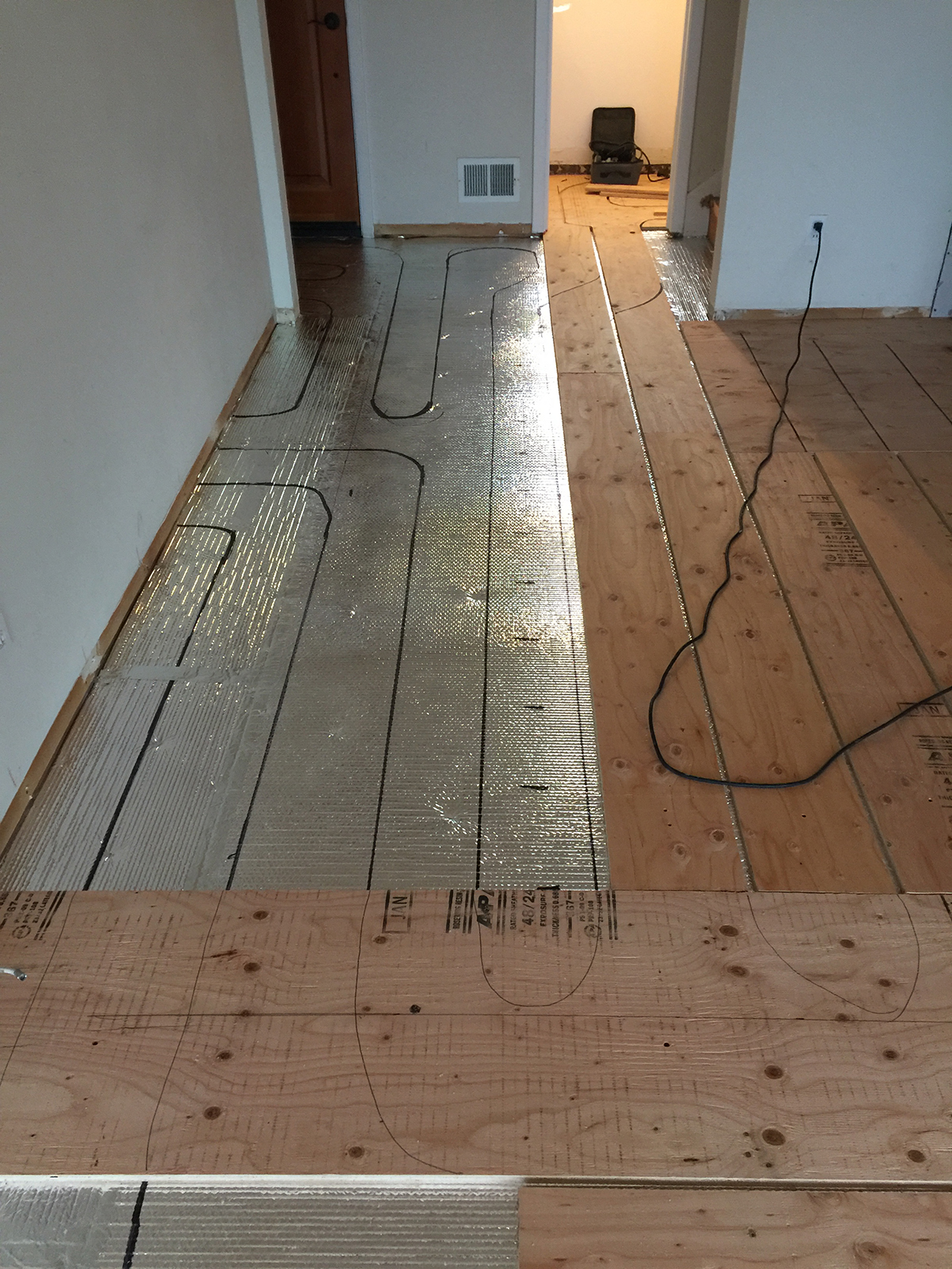 New radiant floor heating system was installed throughout the house. Using reflective insulation and 3/4 custom made plywood strips. Installed 3 zone temperature control system. New mechanical room was installed in the garage.