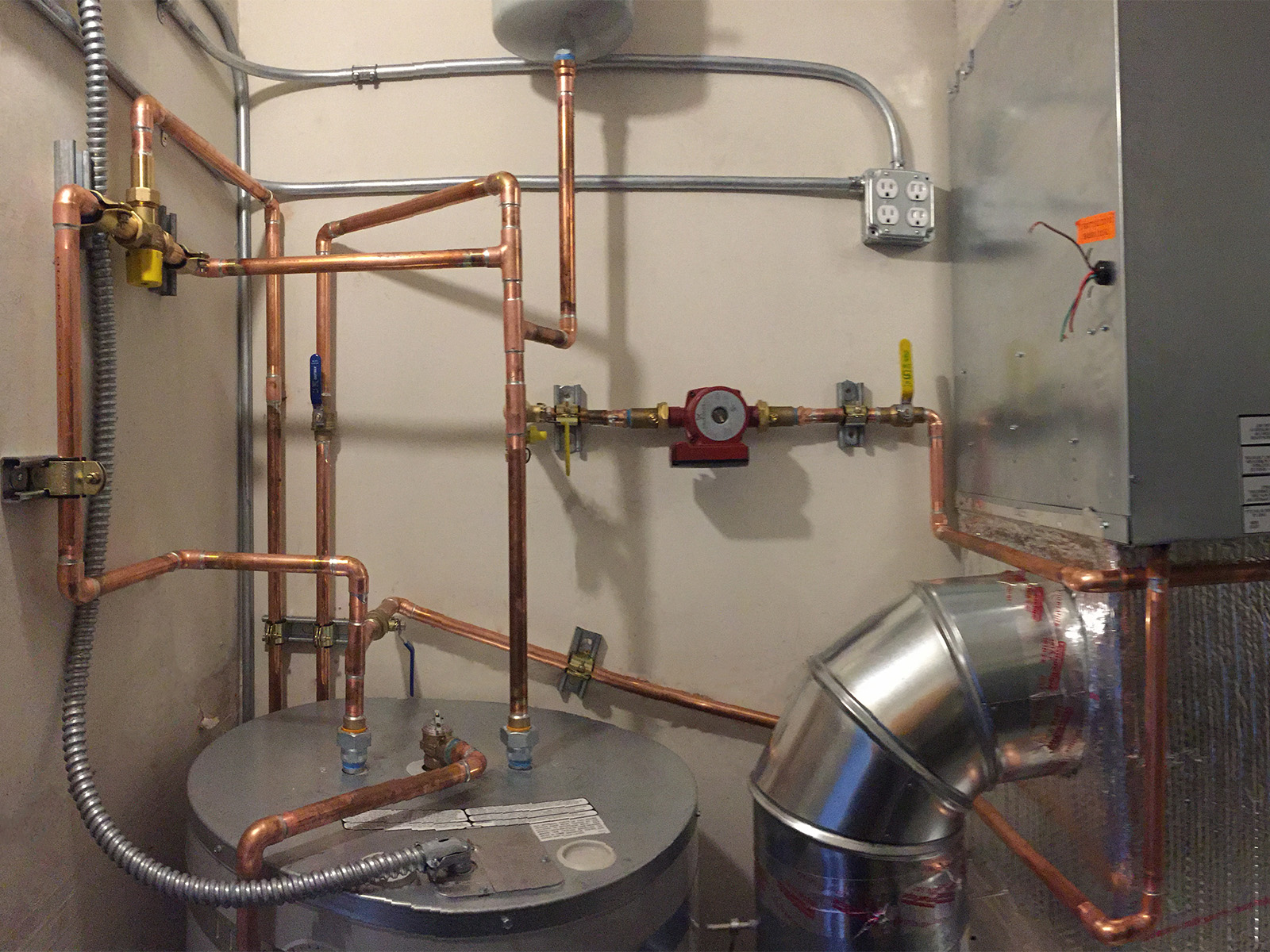 Installed a force air hot water fan coil heating system on first floor. Installed a multi zone mini split heat pump system on the second floor.