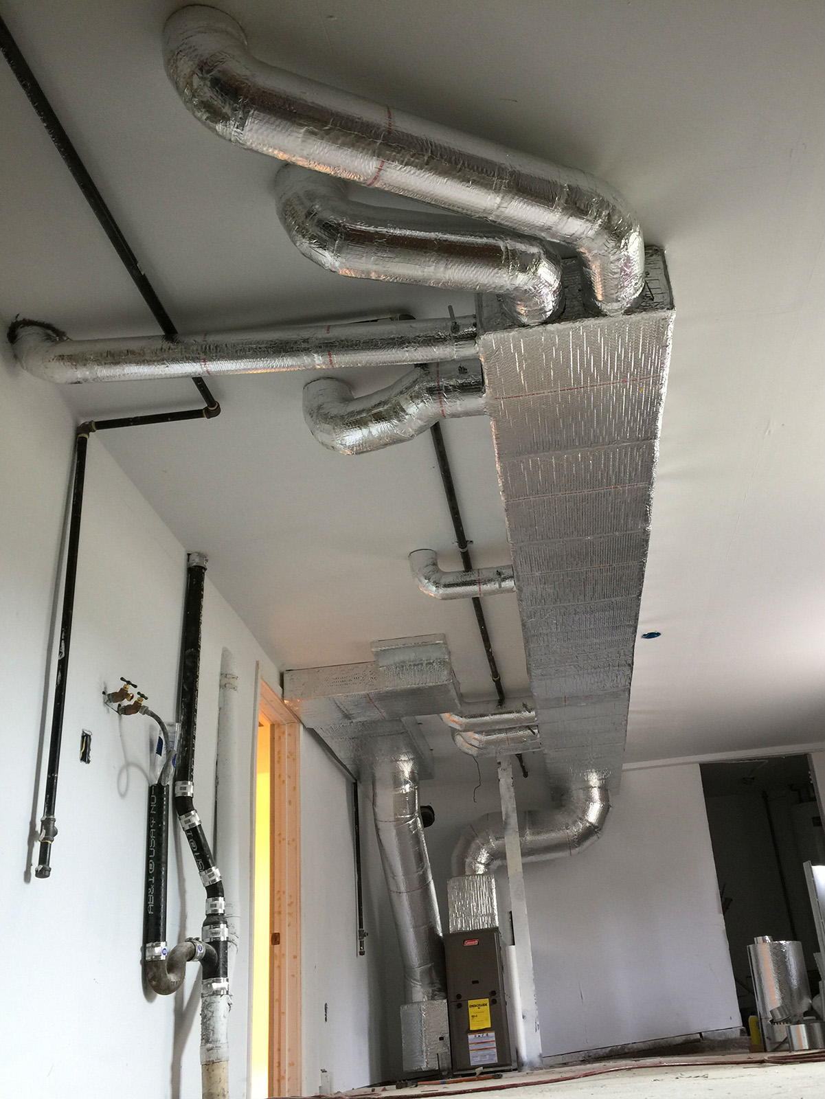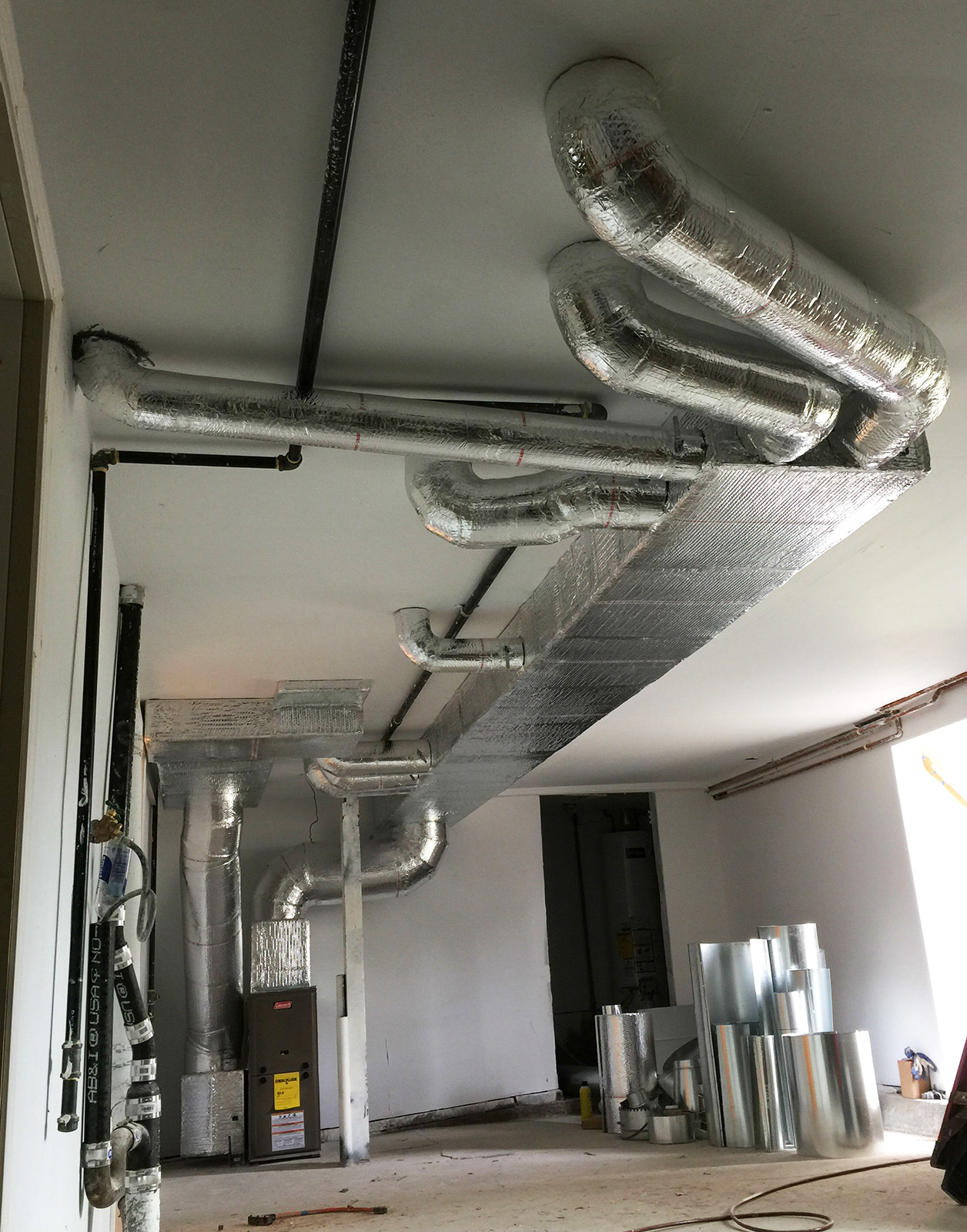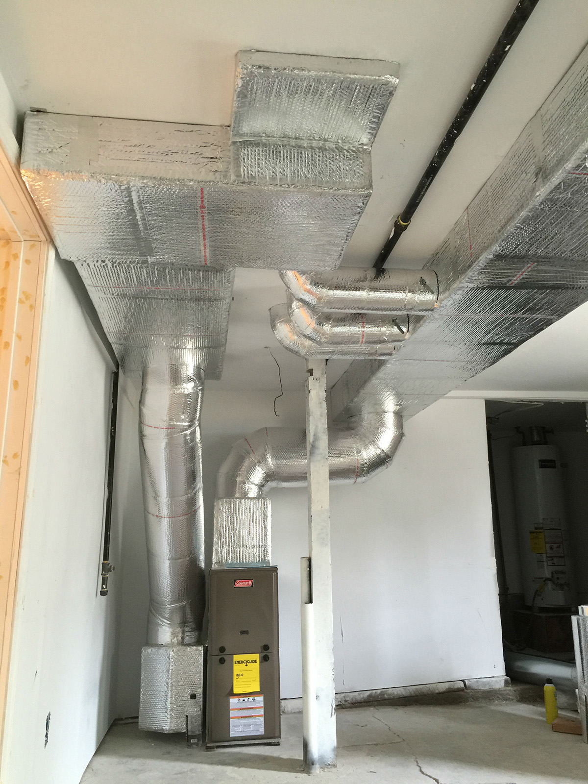 New ductwork. Heating system was installed in a low ceiling garage area.