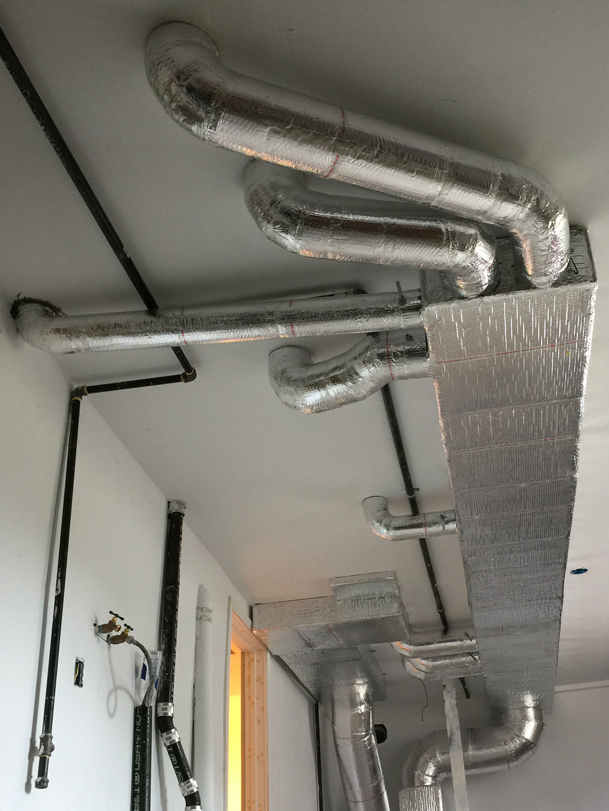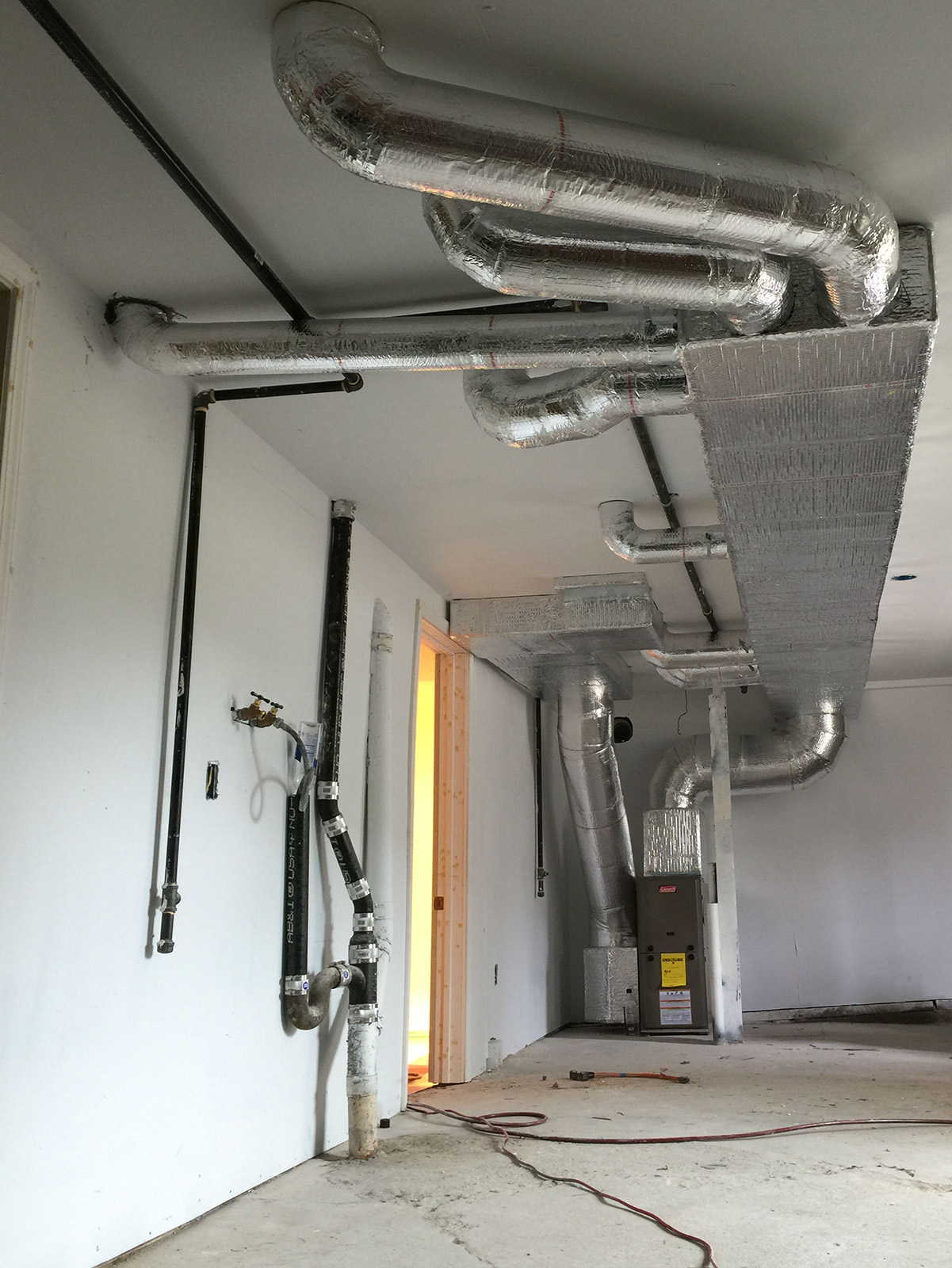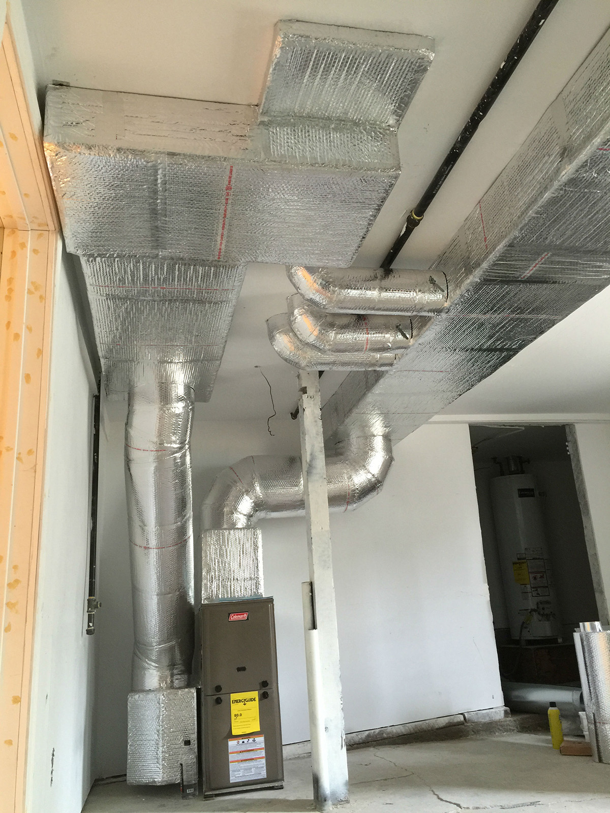 New ductwork. Heating system was installed in a low ceiling garage area.