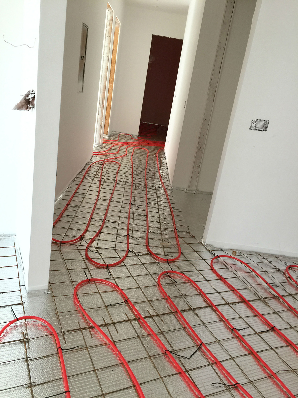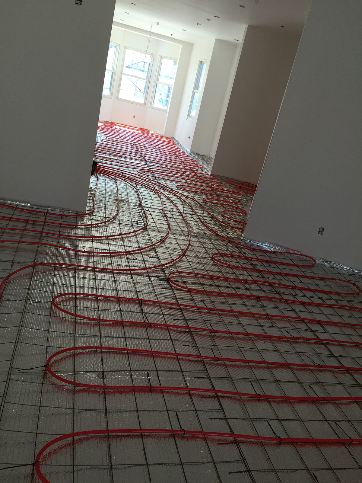 New radiant floor heating system in the apartment building. System was installed in 4 apartment units. New mechanical panel was installed in the garage.