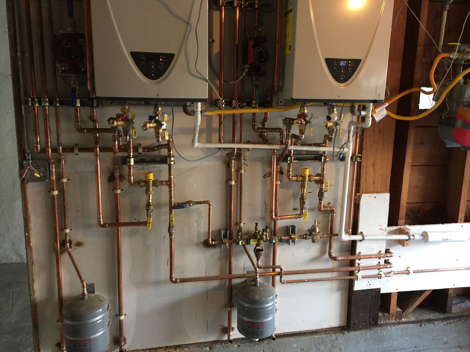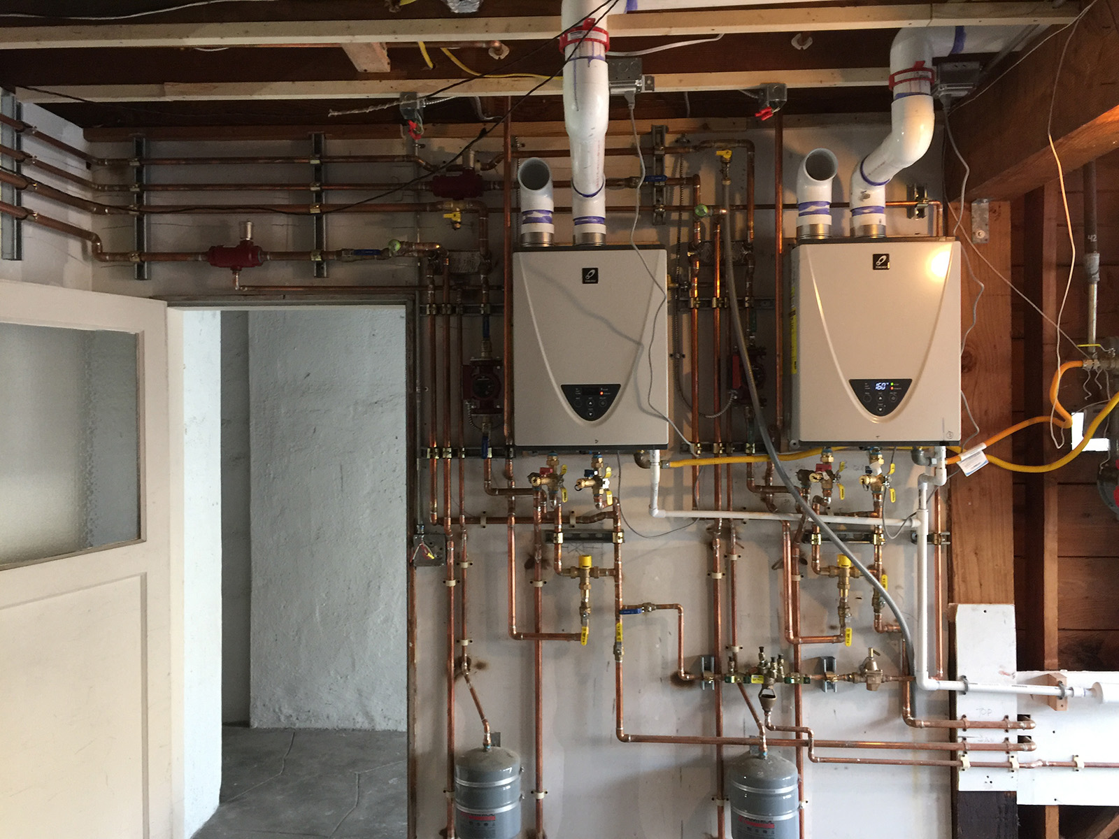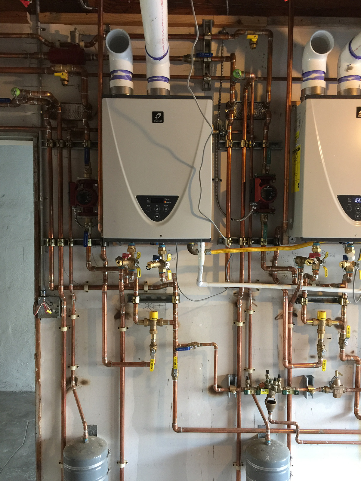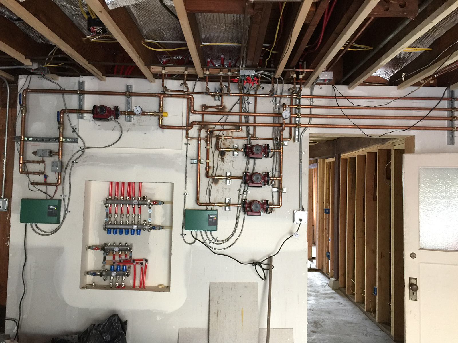 New radiant floor heating system was installed in slab on first floor and under floor on second floor.