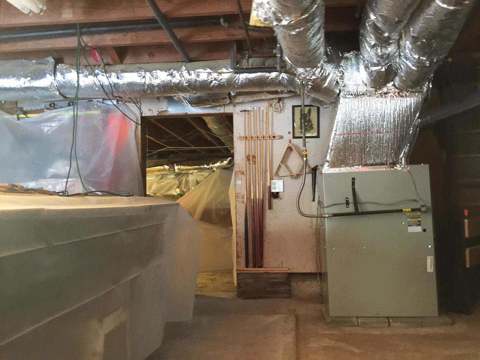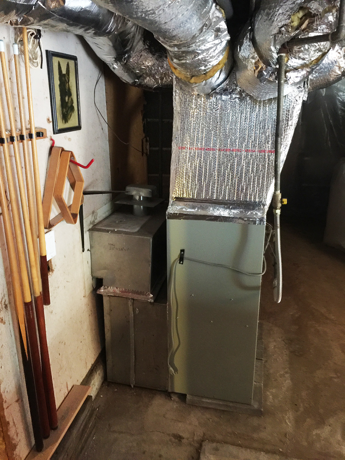 Installed new air conditioner in the basement using existing furnace and flue pipe.
