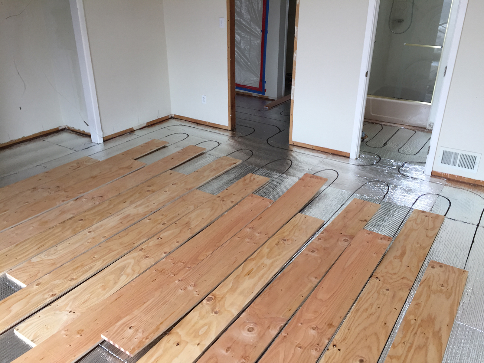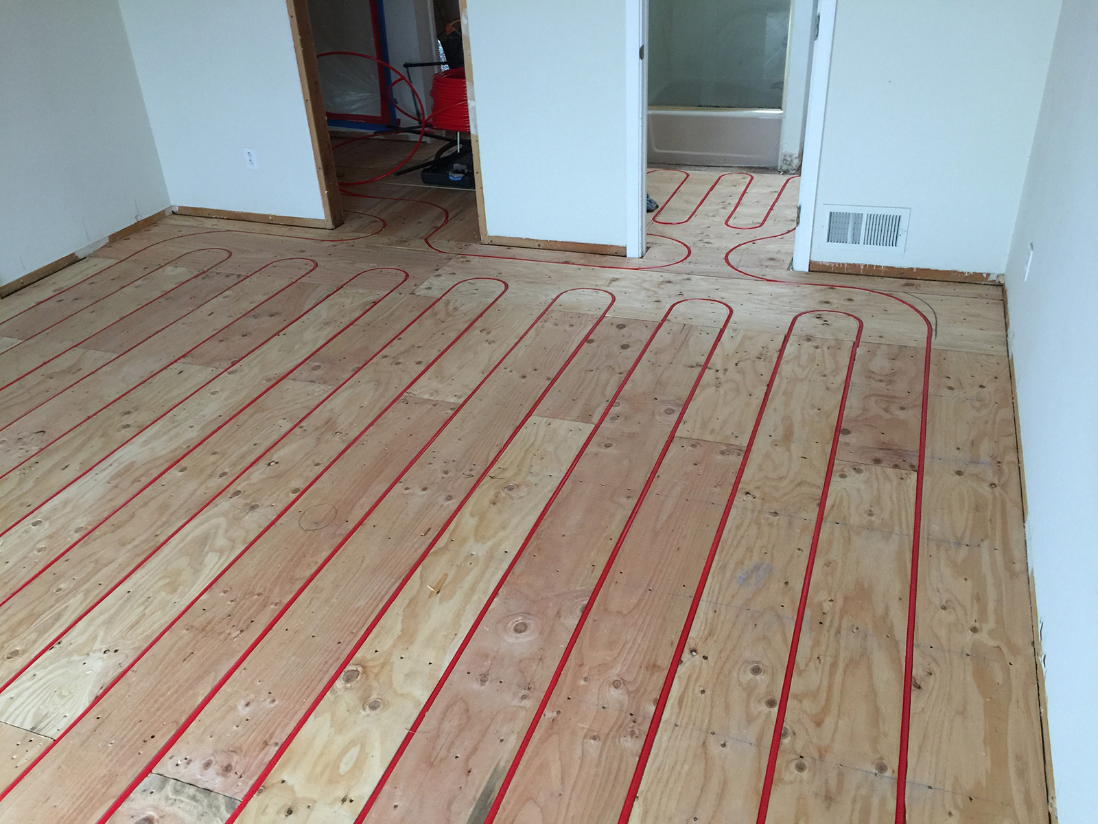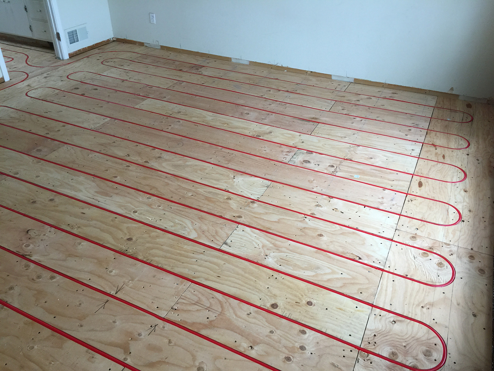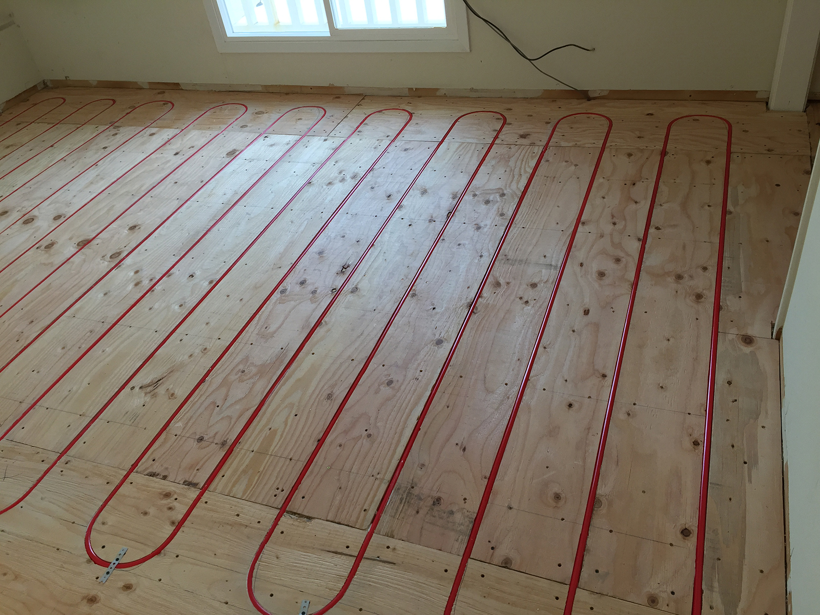 New radiant floor heating system in two story house.