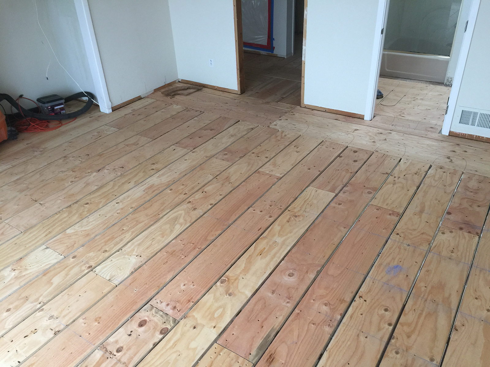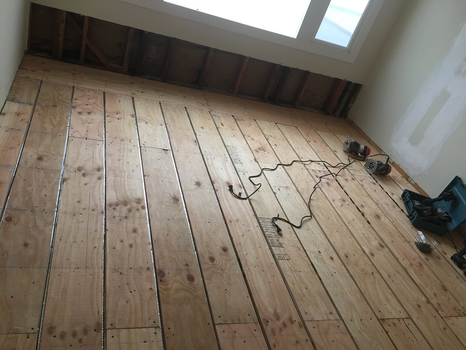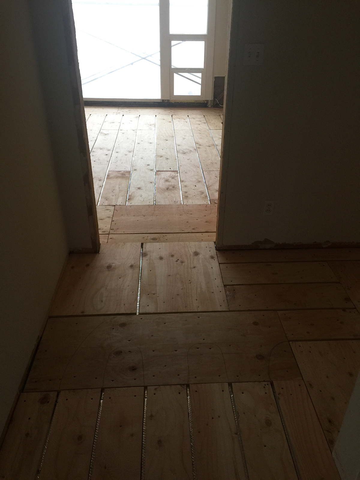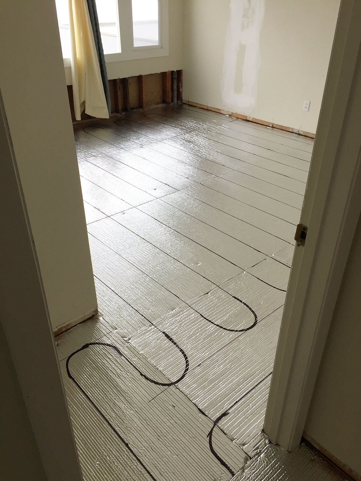New radiant floor heating system in two story house.